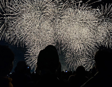 二人の影 花火に映る 恋心